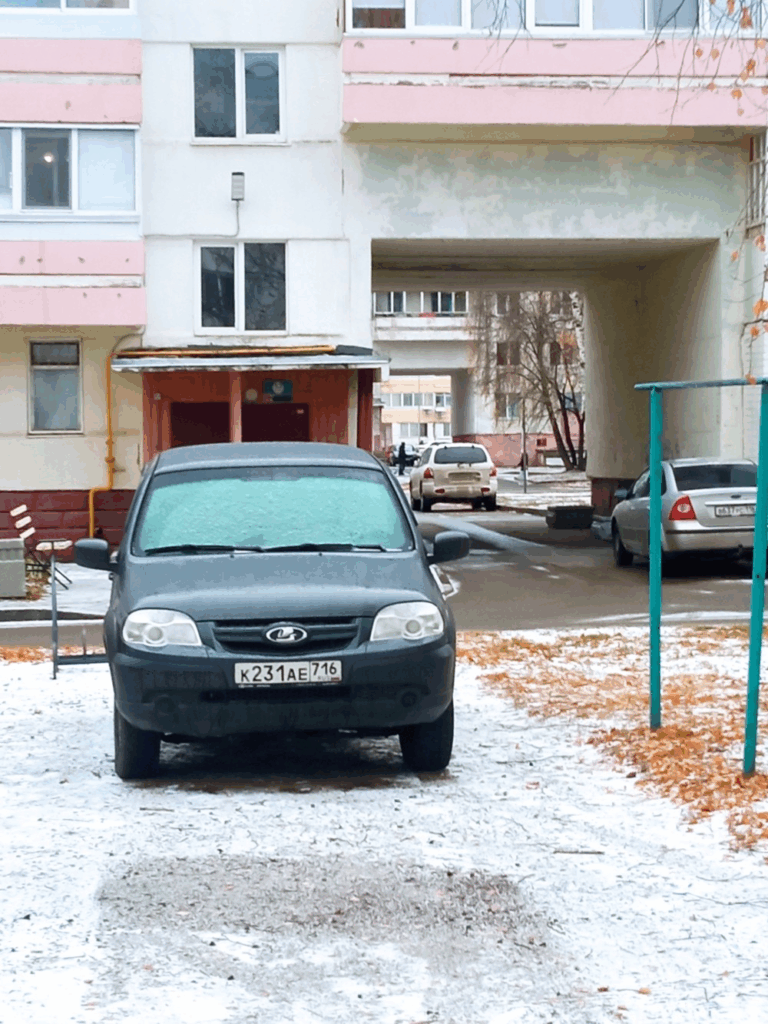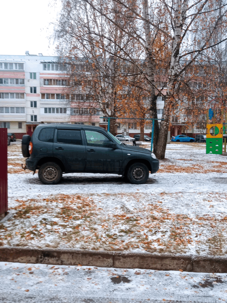 10.11.2024 г., Республика Татарстан, г. Нижнекамск, ул. Бызова, 13. Прошу привлечь к ответственности водителя, который регулярно паркует свой автомобиль на площадке для хозяйственных нужд рядом с детской площадкой.