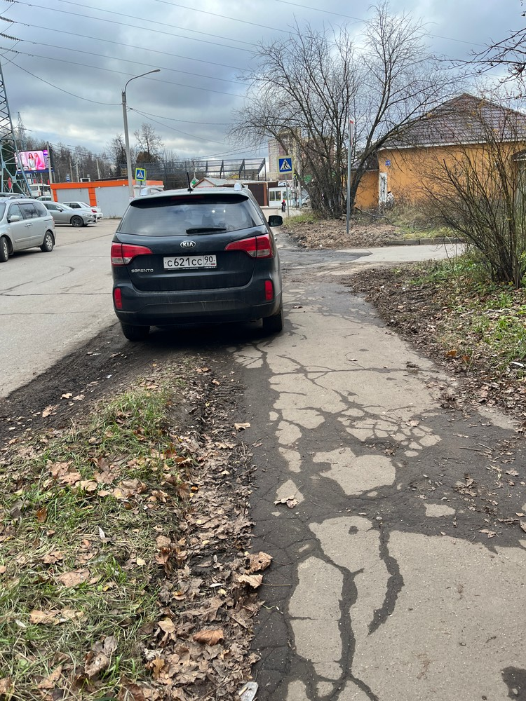 10 ноября 2024 года, 13:48, Московская область, город Солнечногорск, микрорайон Рекинцо, дом 2. Парковка на пешеходной дорожке за домом.