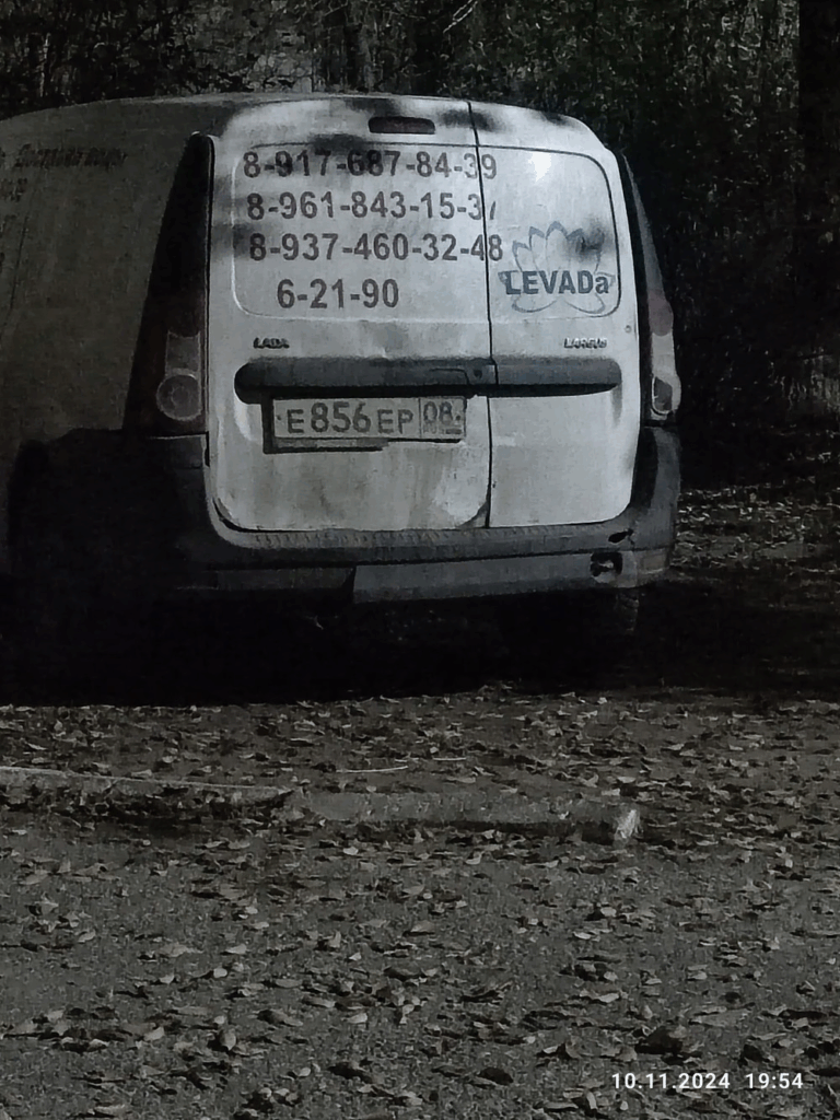 10.11.2024 г., г. Элиста, ул. Городовикова, д. 15. Парковка на газоне автомашины фирмы «Левада», госномер Е856ЕР08.