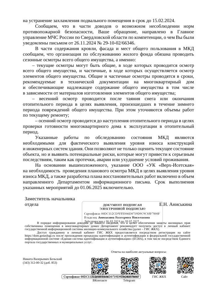 Благодарим неравнодушных граждан за Ваши обращения. Если Вы не согласны с данным ответом Департамента государственного жилищного и строительного надзора Свердловской области, сообщите об этом Нам (желательно с фото/видео доказательствами выполнения работы в неполном объеме или ее невыполнении).
