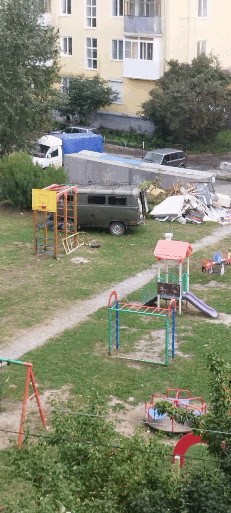 Детская площадка в Верхней Пышме превращена в парковку и свалку для травы