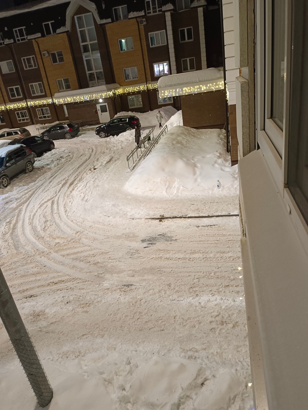 Московская область, г. Королёв, Бурковский проезд, д. 52, к. 1. Дороги и тротуары во дворах не чищены. Месиво рыхлого снега, не пройти, не проехать.