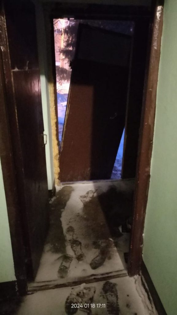 Метель в Кашире снесла дверь в подъезде! Недавняя метель в нашем округе ознаменовалась не только плохой видимостью на дорогах, пробками и кучей снега. В деревне Никулино на улице Новая 2 из-за сильного ветра с петель слетела дверь в подъезде. Произошло это 17 января, то есть почти две недели назад. К сожалению, никто ее так и не починил, жильцы пытаются достучаться до коммунальных служб, но дверь так и висит на соплях…. В подъезде уже лежит снег, холод как на улице, сквозняк. Еще чуть-чуть и жильцы останутся вообще без входа, и заходи кто хочешь