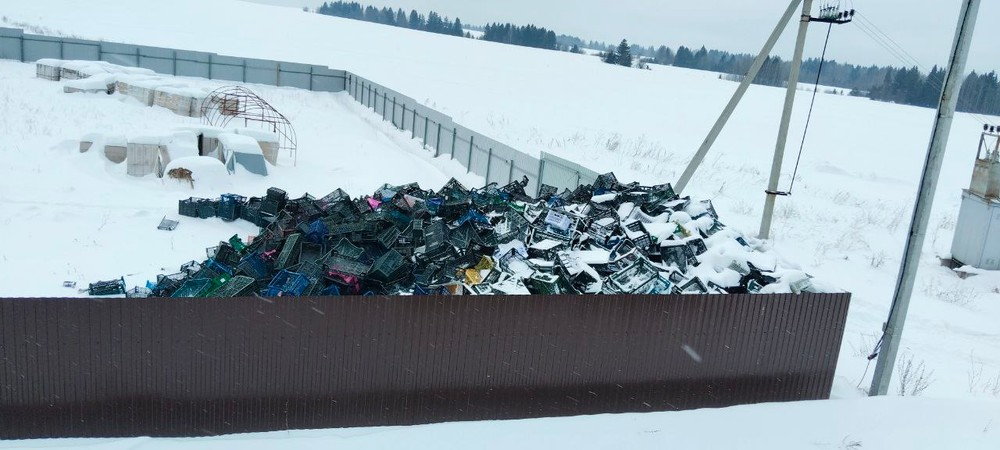 Помимо этого, на земельном участке собственник устроил свалку из использованных овощных полимерных ящиков высотой более трёх метров. Ящики содержат органические остатки овощей и фруктов, что способствует распространению насекомых и грызунов. Также навал полимерных ящиков провоцирует пожароопасную обстановку на местности.