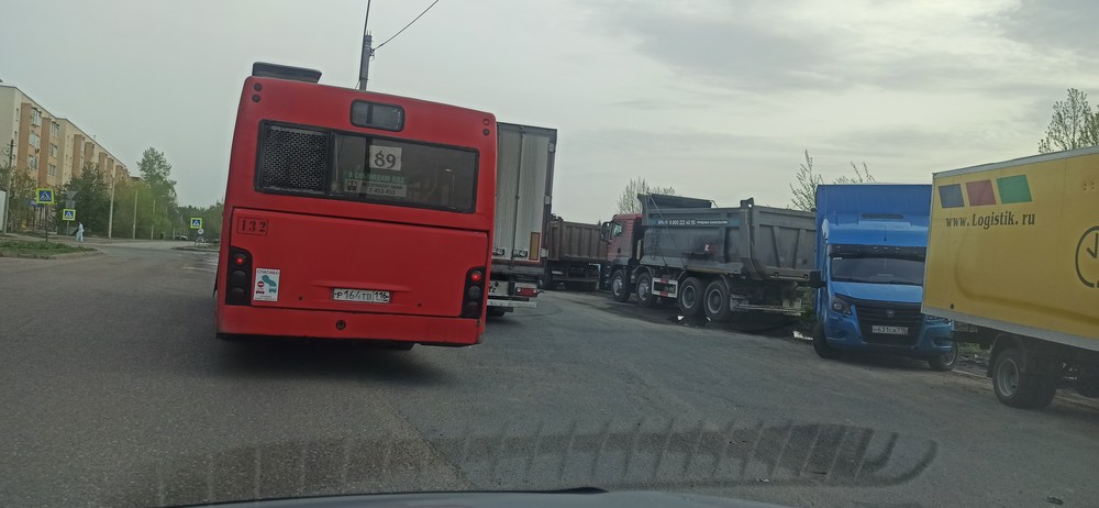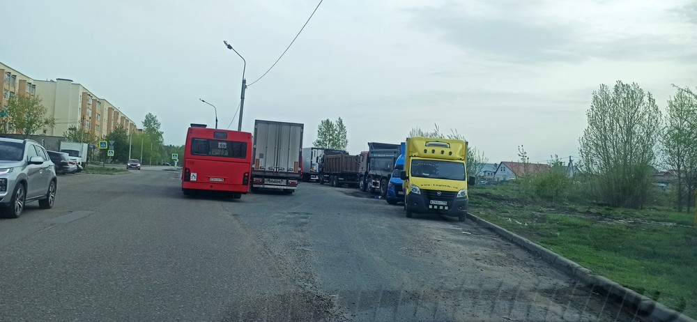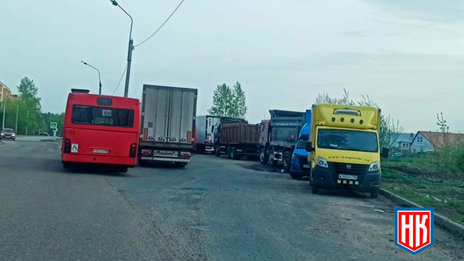 Грузовые автомобили мешают автобусам на конечной остановке на ул. Гудованцева в Казани