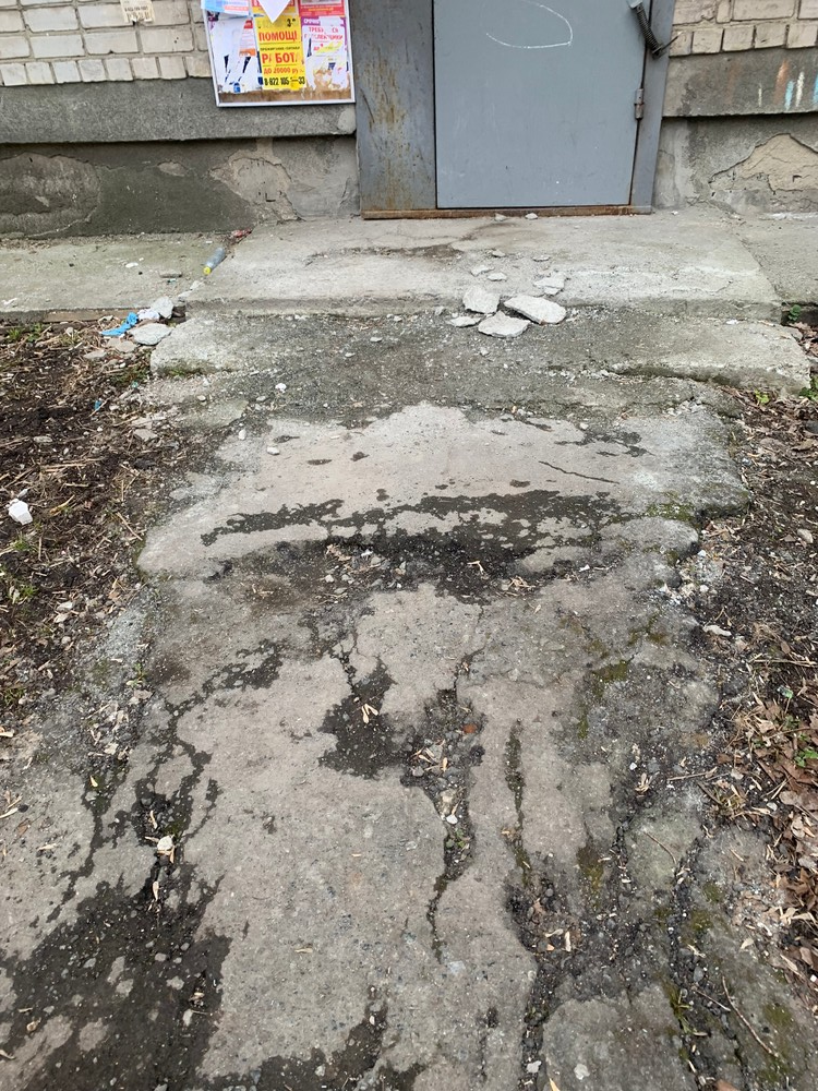 Местные жители уже даже приспособили их под разные нужды: кто-то высаживает в них кусты, а кто-то огораживает парковочное место. По всей территории состояние асфальтового покрытия оставляет желать лучшего. Лестницы, ведущие к подъезду, разрушены. Мусор вывозят крайне редко, и ситуация дошла до того, что кусок картона с помойки прилетел прямо в лицо местной жительнице, когда она выходила из подъезда своего дома.