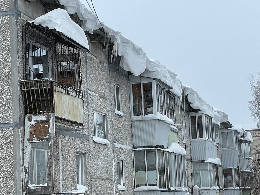 Так убирается снег с крыш УК. «РЭМП УЖСК» в Екатеринбург, Симферопольская 32 и на остальных домах в обслуживании.