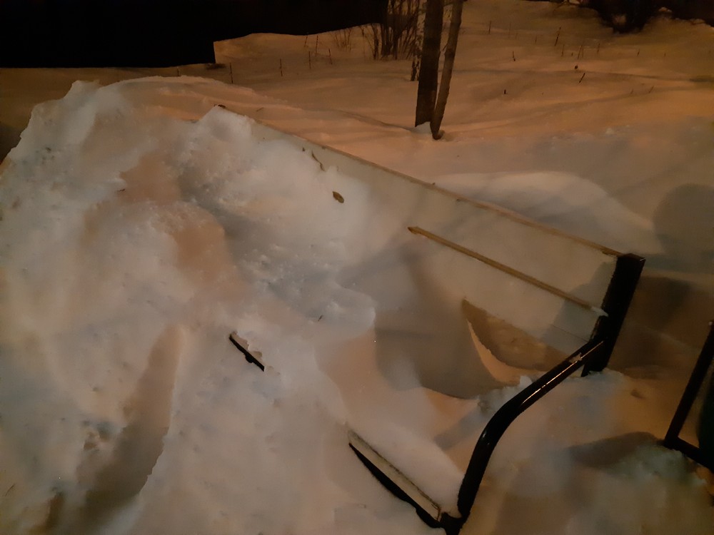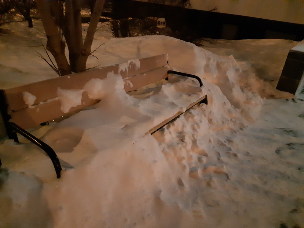 Москва, улица Гурьянова, дом 19. Возле дома все лавки засыпаны снегом. Просьба почистить лавки.