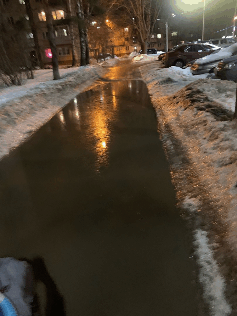 05.03.2024 город Кашира, ул. Новокаширская, 16. Огромная лужа , пешеходный проход не почищен. Вопрос: как проходить людям ????!!!! Эта лужа в этом месте постоянная, и никто ничего с ней сделать не может.