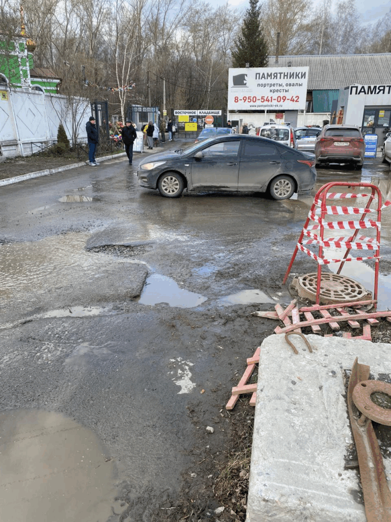 Лужи и ямы у входа на Восточное кладбище Екатеринбурга: когда решат проблему?
