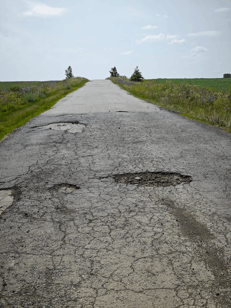 Здравствуйте. Сегодня, 18 июля 2024 г. на дороге по координатам 55°16’45.8″N 60°52’47.7″E был пробит обод колеса. Каждый день по дороге ездят сотни легковых машин, маршрутки с людьми. Дорога не ремонтируется уже много лет.