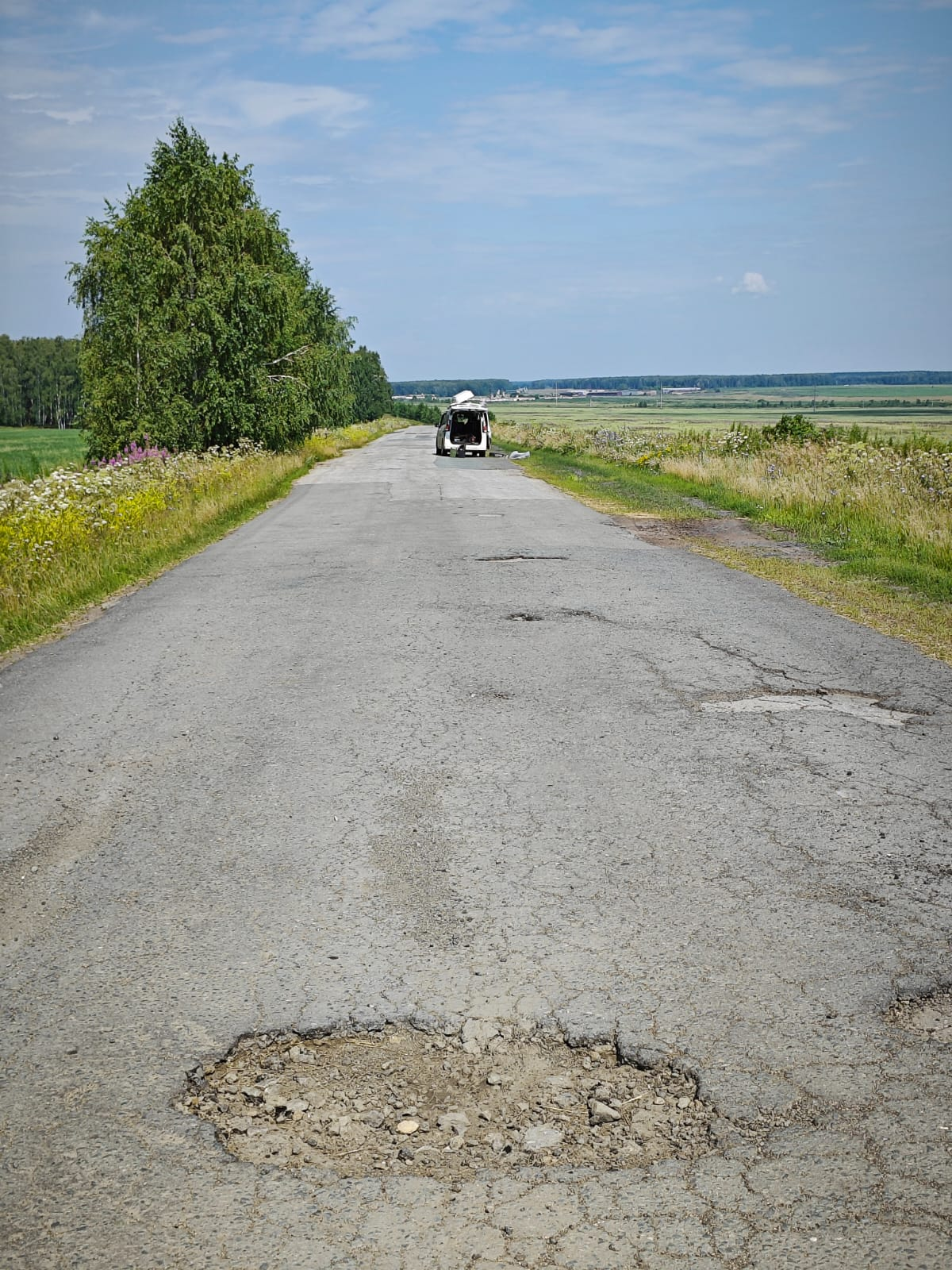 Здравствуйте. Сегодня, 18 июля 2024 г. на дороге по координатам 55°16’45.8″N 60°52’47.7″E был пробит обод колеса. Каждый день по дороге ездят сотни легковых машин, маршрутки с людьми. Дорога не ремонтируется уже много лет.