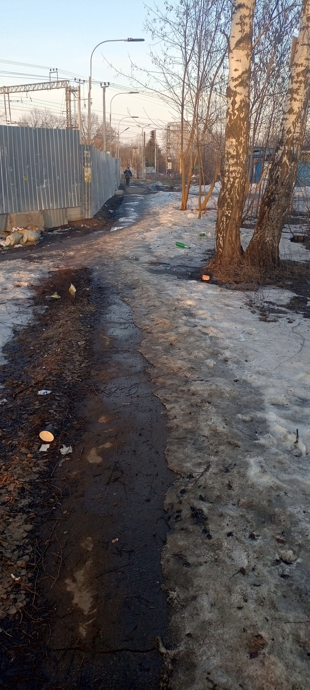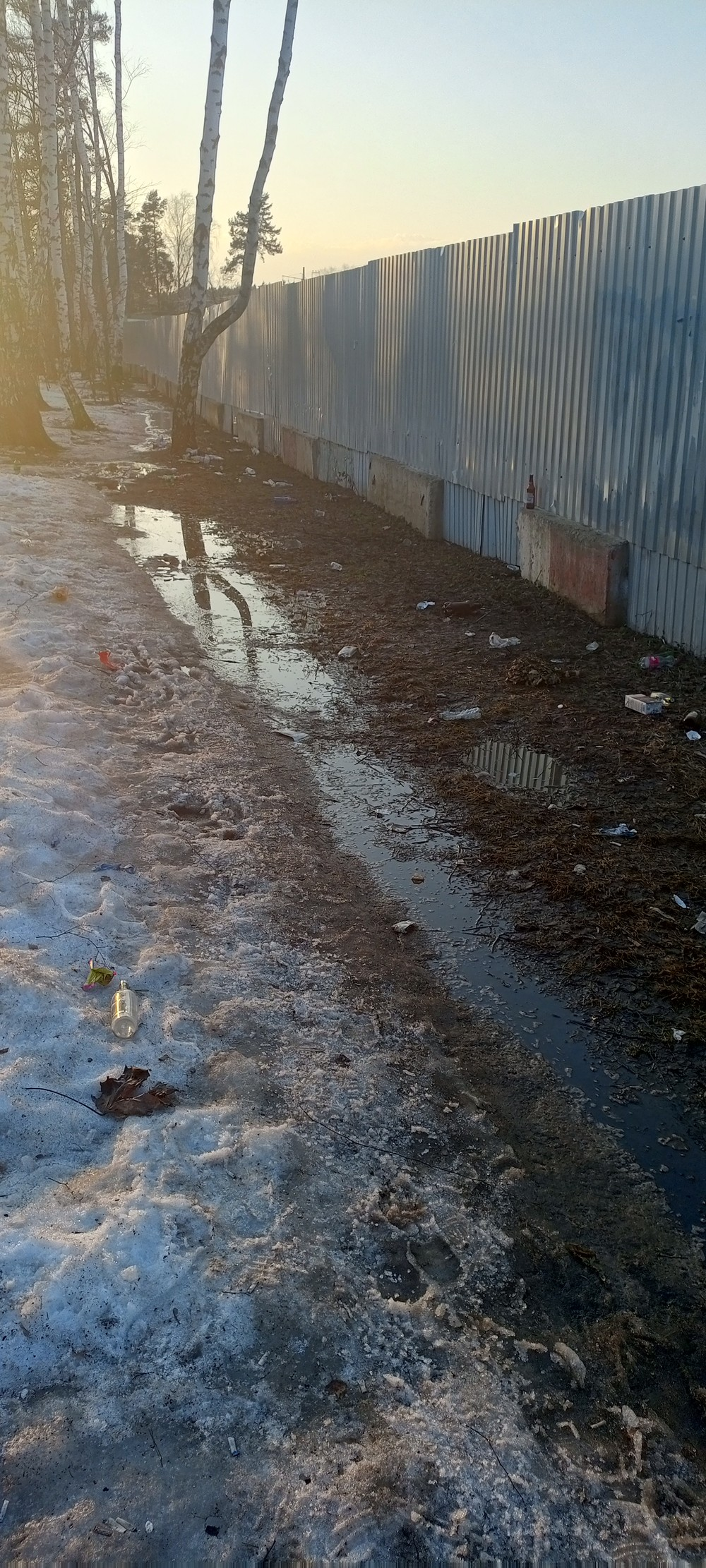 Разбросан мусор, никто не убирает. В районе ЖД станции Купавна. Точный адрес не могу указать, так как это зелёная зона. Могу указать координаты: 55.752614, 38.121394.