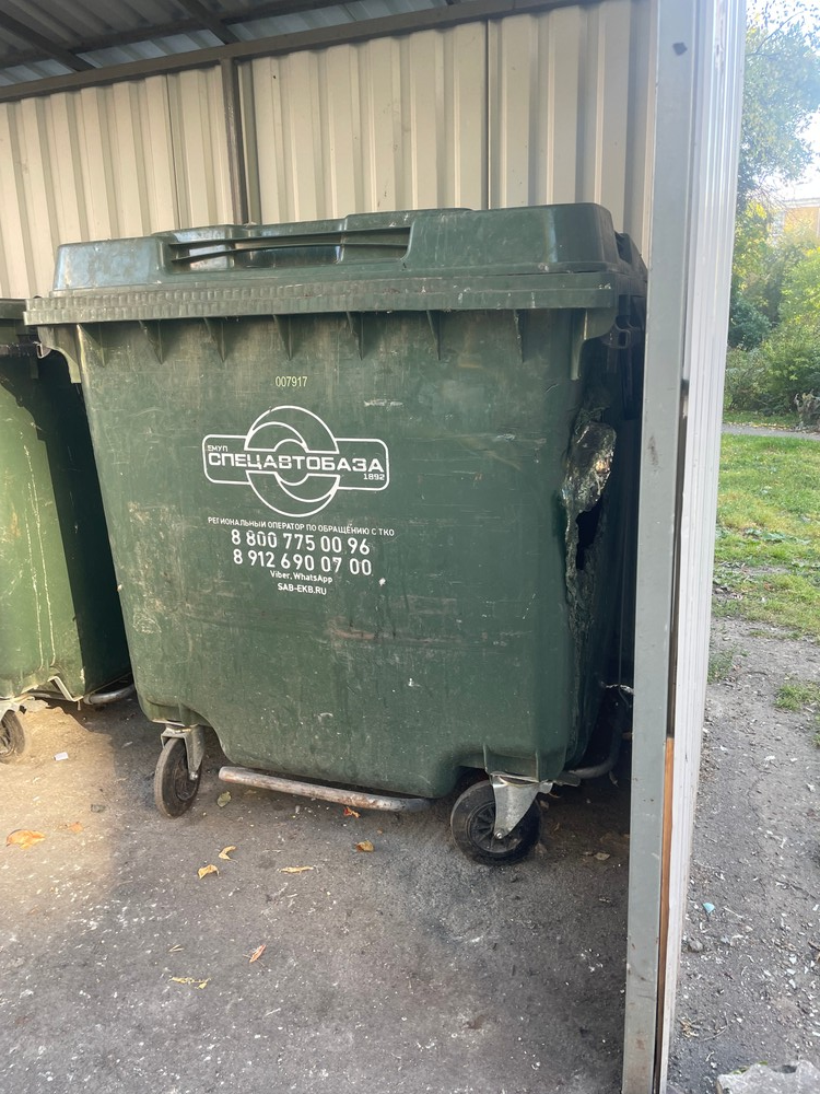 ОБНОВЛЕНИЕ: было получено повторное обращение по этому вопросу — Повреждённые пожаром контейнеры на улице Строителей до сих пор не заменены