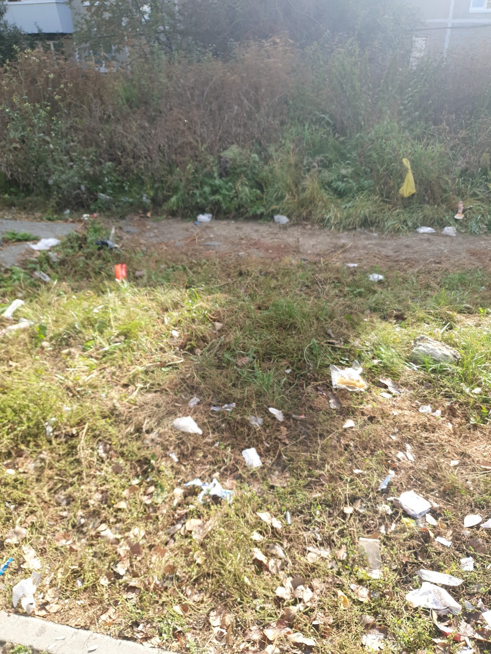 16.09.24, Екатеринбург, ул. Бисертская 22. Неубранные урны, мусор на газоне, нескошенная трава. УК не реагирует. На улице Бисертская 22 в Екатеринбурге наблюдается хроническое отсутствие уборки. Урны переполнены, мусор разбросан по газону, а трава накошена.
