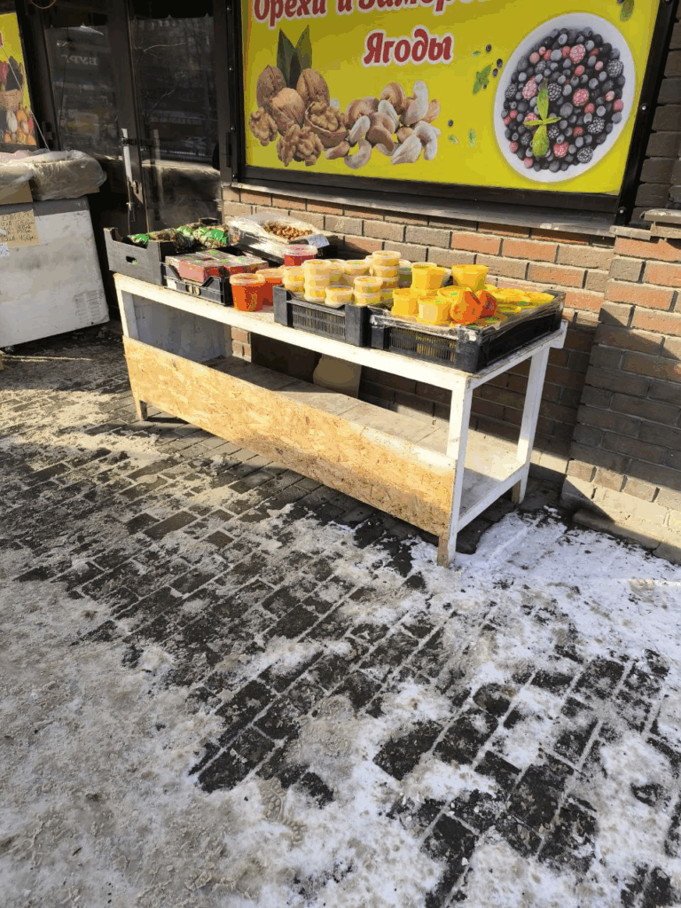 12.03.25, 11:30 г. Екатеринбург, ул. Щорса, 29. Данные предприниматели опять выставили на улицу столы для торговли и возобновили торговлю с нарушением санитарных норм.