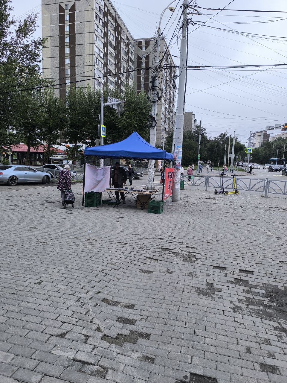 31.07.2025 г., 12:20. г. Екатеринбург, ул. Щорса, д. 29. Незаконная торговля в пешеходной зоне.