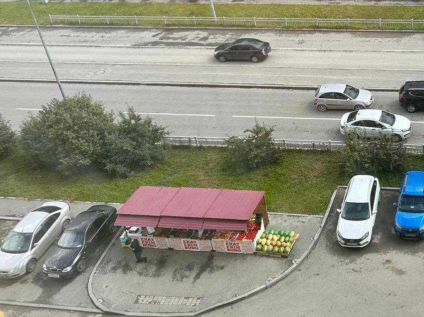 г. Екатеринбург ул. Анатолия Мехренцева, 46. Стоянка со стороны дублера Мехренцева. Нелегальная торговля овощами и фруктами. В 2023 году ларек был демонтирован. В этом году поставили самовольно палатку на территории стоянки около дома. Ходят гадить в подъезд дома, разводят мышей, оставляя тухлые продукты на ночь.