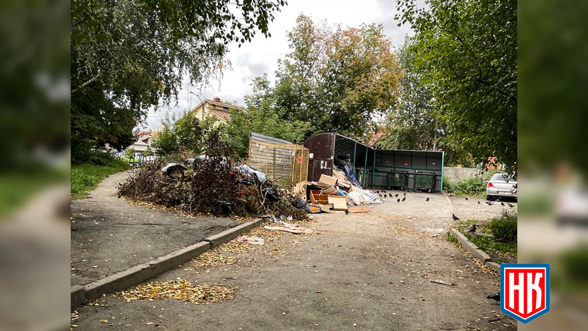 Ненадлежащее состояние мусорной площадки на улице Симферопольская в Екатеринбурге