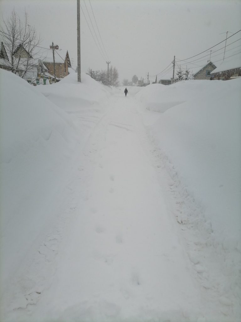 Невозможно ходить по улице Суворова в Казани из-за снега