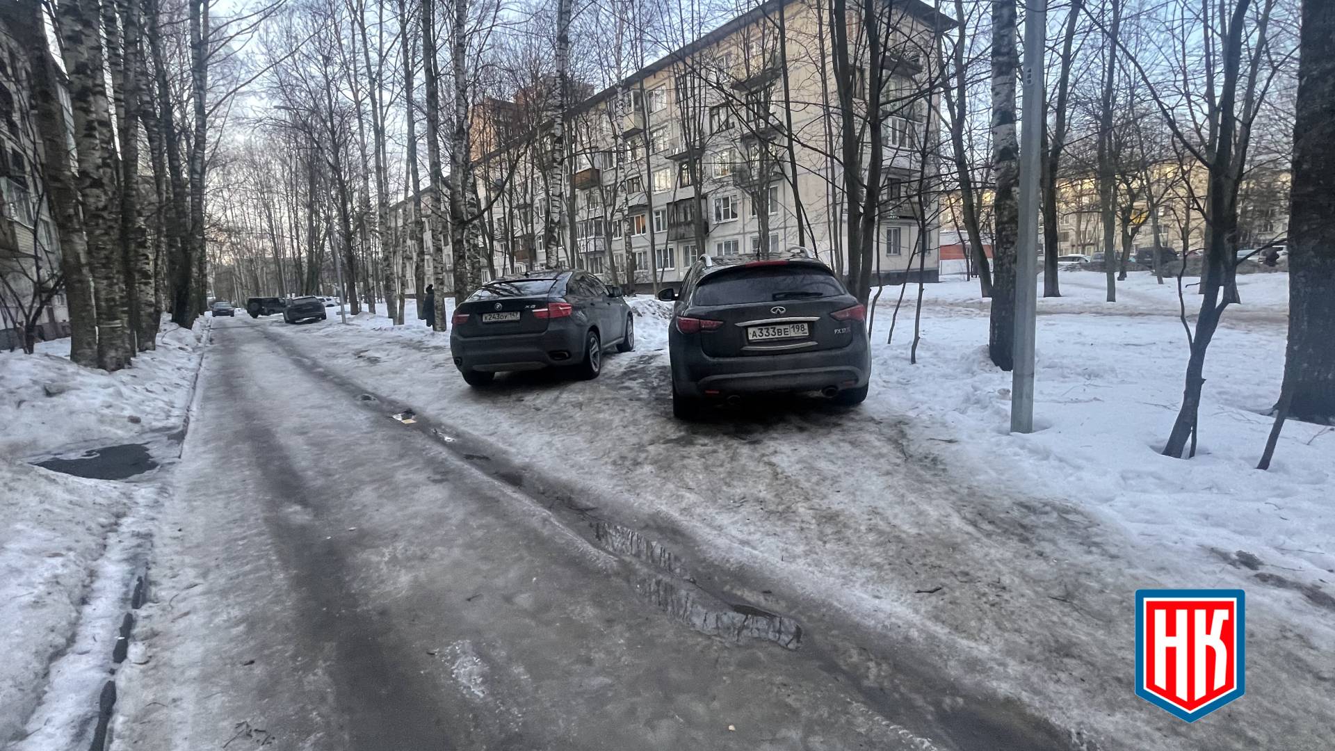 Незаконная парковка из-за неочищенного снега и льда в Санкт-Петербурге
