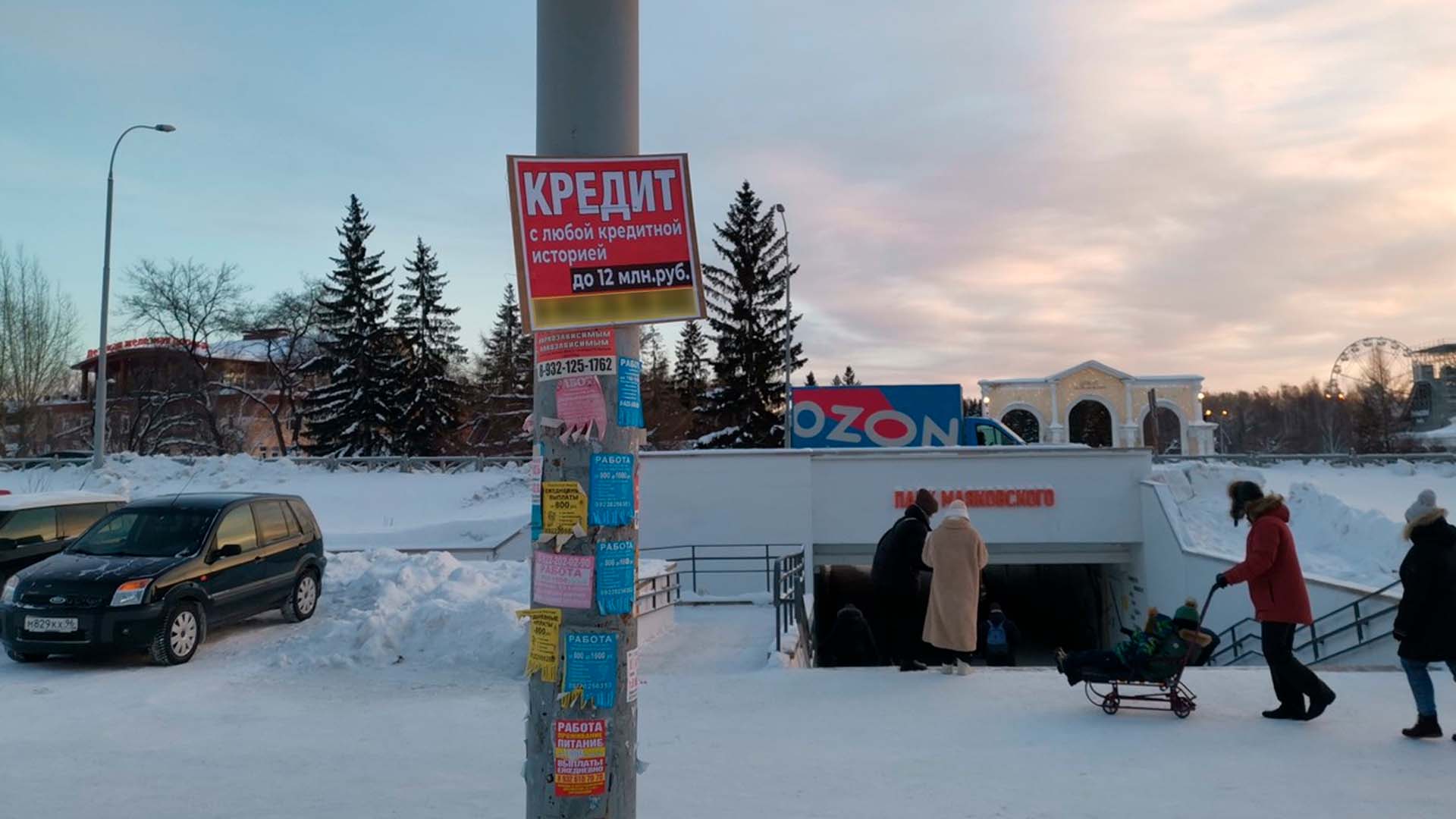 Незаконная реклама кредитов около парка Маяковского в Екатеринбурге