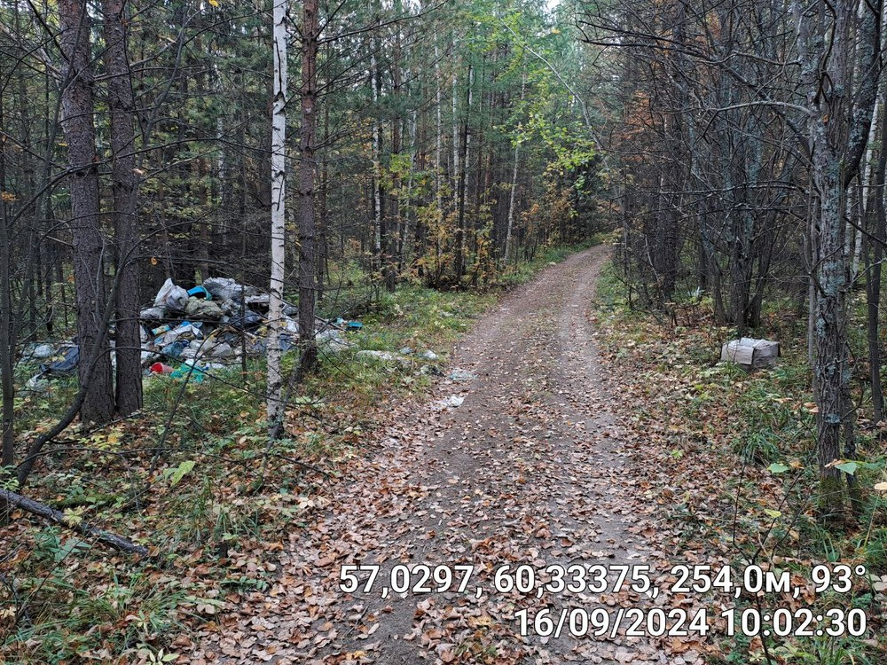 Поступило обращение через мобильное приложение о незаконной свалке мусора, расположенной на лесной дороге возле трассы на поселок Сагра в городском округе Верхняя Пышма, Свердловской области.
