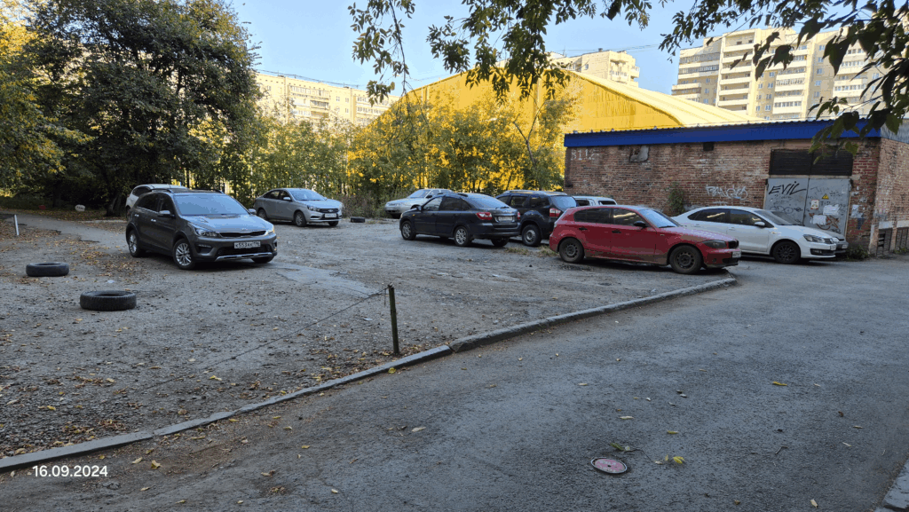 На данной территории без согласования с жителями были установлены ограждения (металлические столбики, цепи и другие конструкции), ограничивающие доступ к парковочным местам. Парковка организована в хаотичном порядке, включая размещение автомобилей на зеленых зонах (газонах), что приводит к их разрушению и создает неудобства для жильцов.