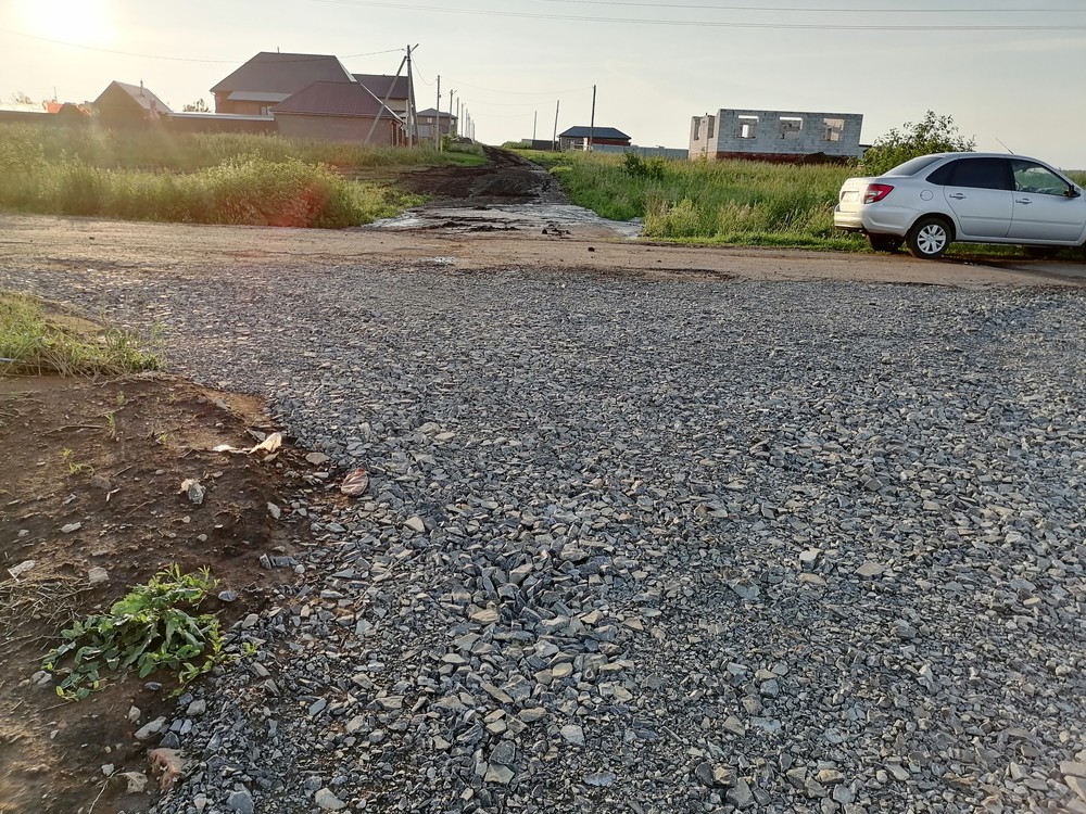 13 июля 2024 г., город Мензелинск, ул. Романтиков. По улице Романтиков щебень застелен только на половину улицы, хотя на второй половине три жилых дома и прогрессивно строящийся. В дожди сильно подумывает дорогу, что делает невозможным подъезд техники к участку. Просим на второй части улицы Романтиков решить вопрос с подмываемой частью и застелить щебень.