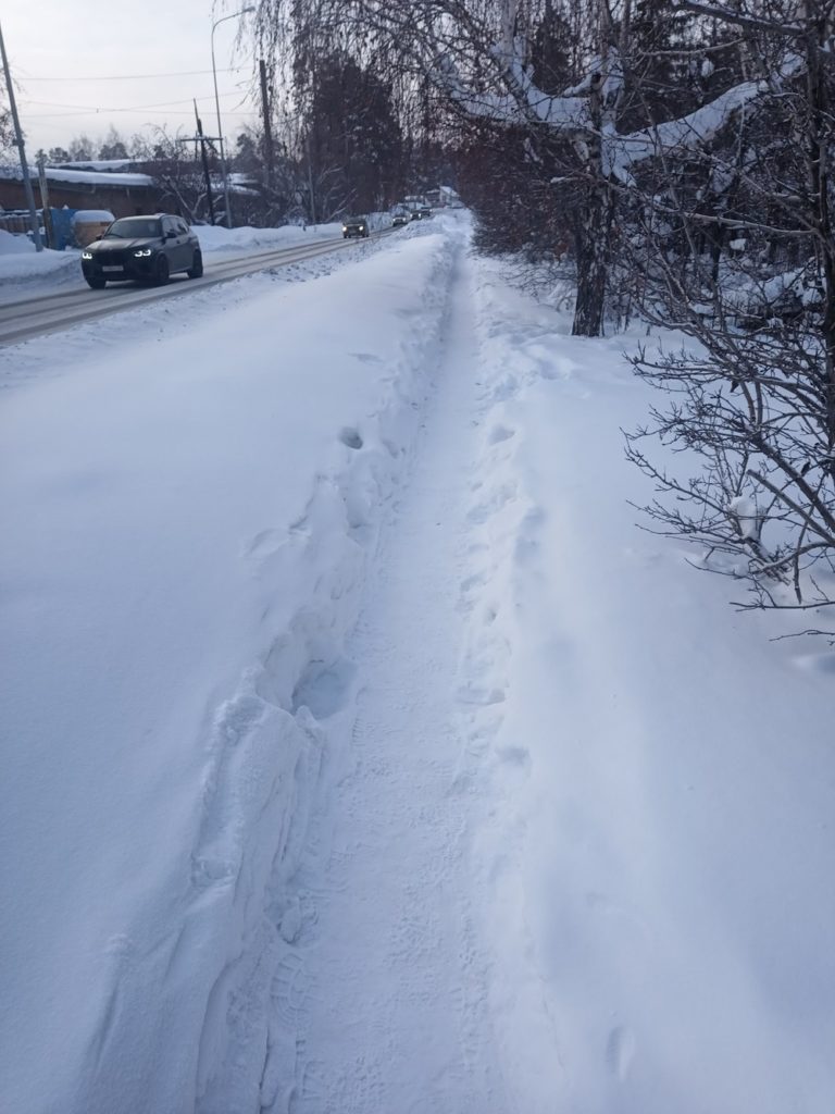 10.01.2024 Екатеринбург, Московский тракт 9 км. За эту зиму не разу не производили чистку пешеходной дорожки вдоль дороги Чусовской тракт