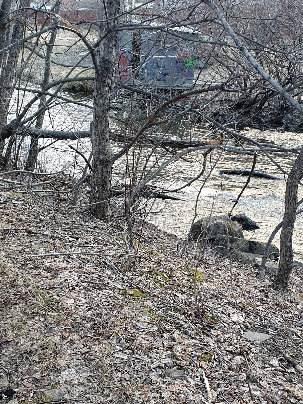 24.05.25, Екатеринбург, ул. Бисертская, 16. Нужно почистить зону реки от упавших в неё деревьев. Администрация Екатеринбурга обещала провести работы этой весной, но никаких движений нет.