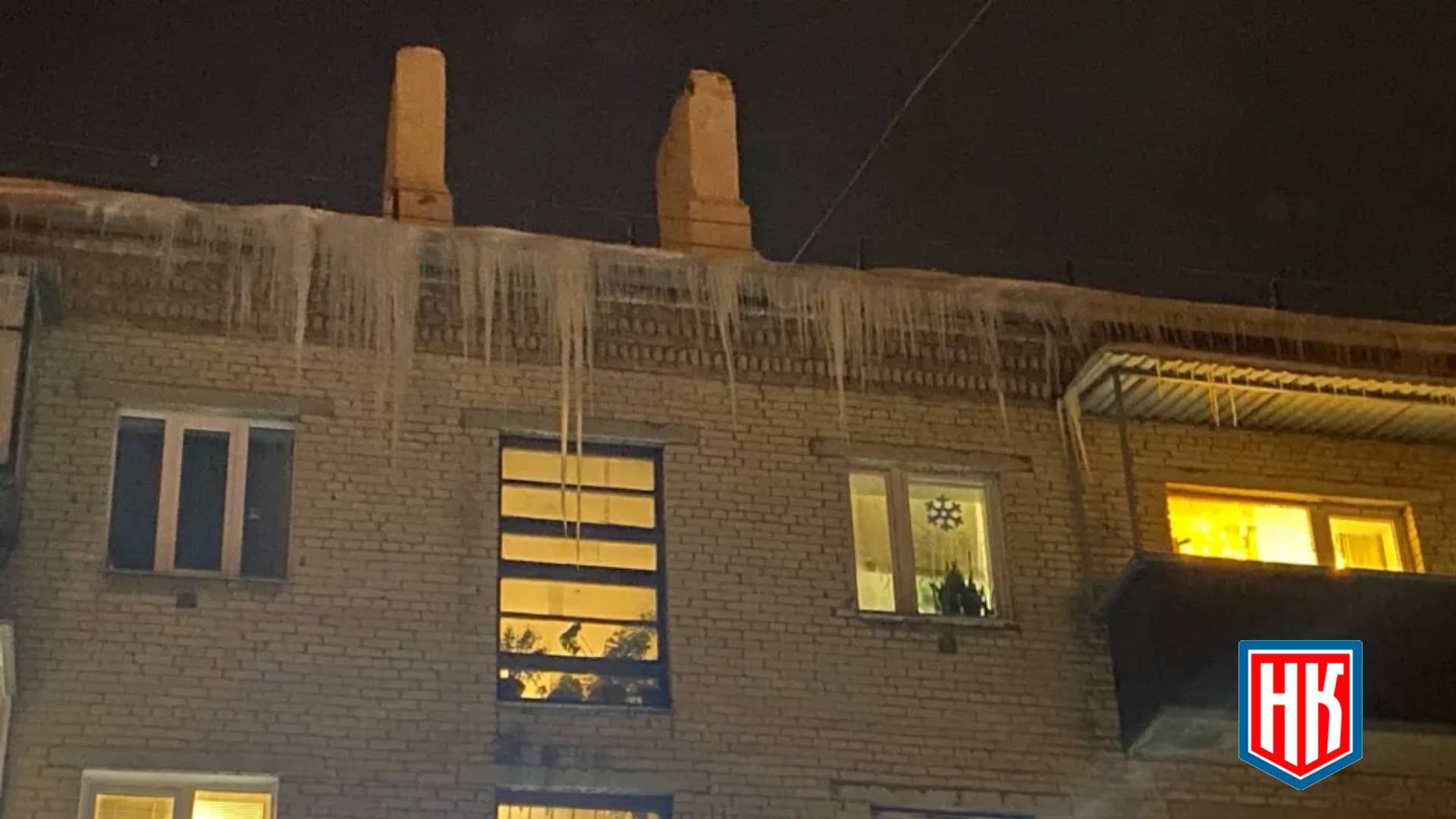 4.02.24 г. Кыштым, Челябинская область. Улица Ленина 22в. Висят сосульки больших размеров.