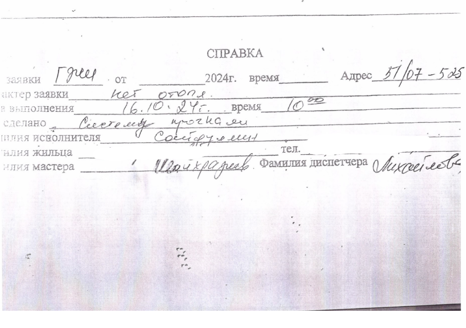 Представители управляющей компании «Камстройсервис» выполнили регулировку системы теплоснабжения в многоквартирном доме 51/07. В результате отопление в квартиру было подано в полном объеме, что подтверждается справкой, составленной 16.10.2024.