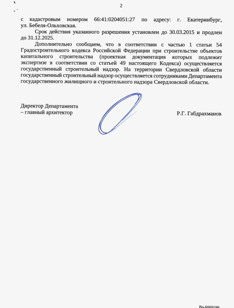 На ваше обращение о законности строительных работ на участке с кадастровым номером 66:41:0204051:27 сообщаем следующее: