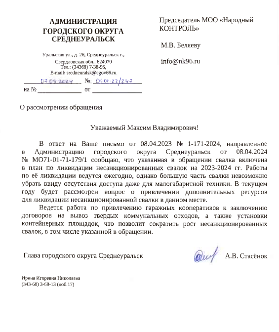 Ответ из Среднеуральска по вопросу свалки на ул. Гагарина