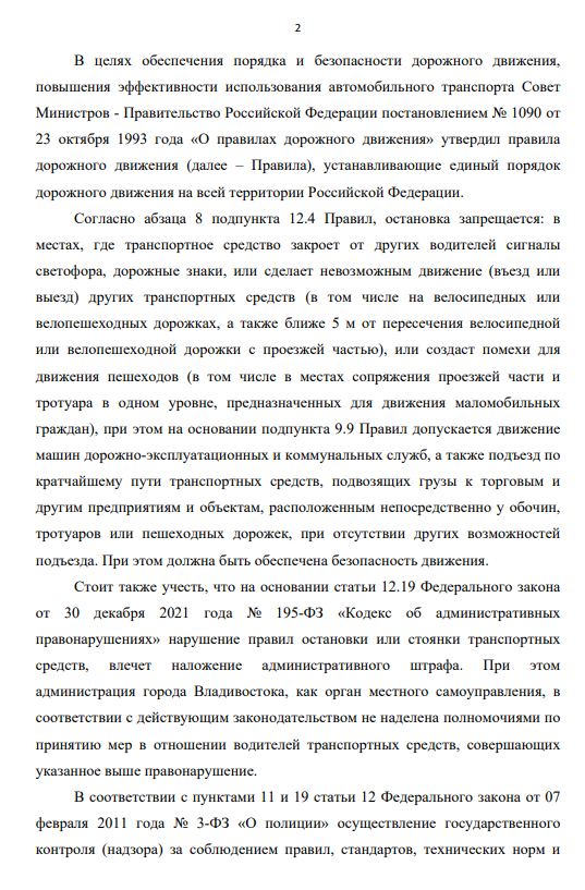 Публикуем ранее поступивший ответ по обращению жителей города Владивосток по вопросу установки полусфер по проспекту 100 лет Владивостоку.