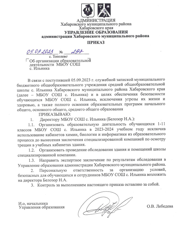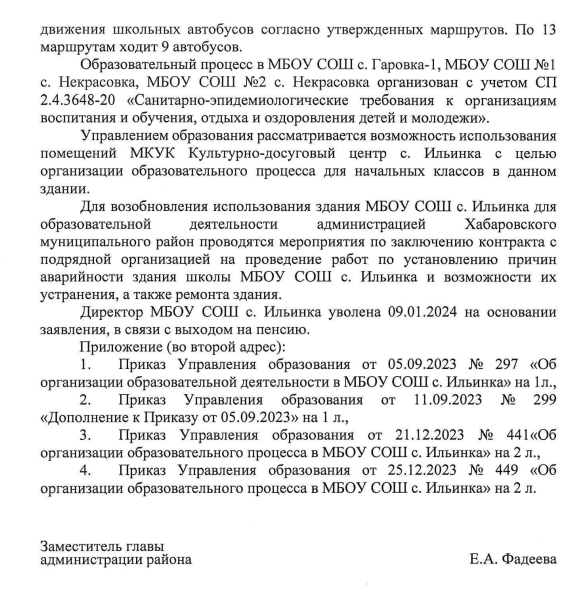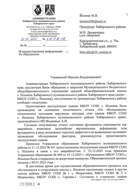 Публикуем ранее поступивший ответ по обращению жителей села Ильинка Хабаровского края по вопросу закрытия аварийной школы.
