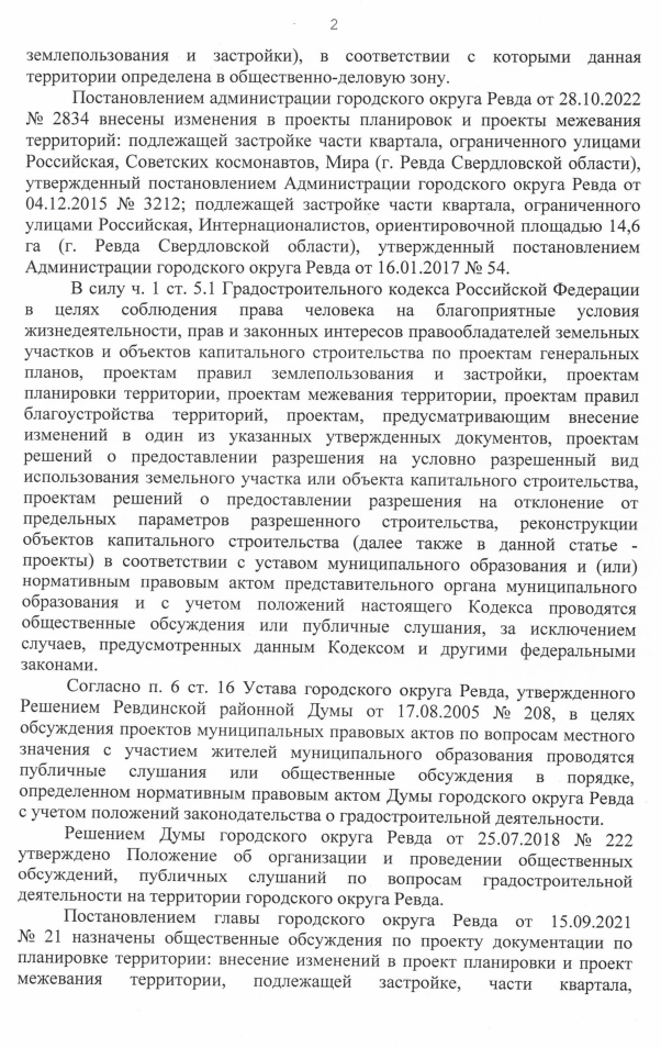 Прокуратура подтвердила, что изменения в проект планировки и проект межевания территории, касающиеся данного участка, были внесены в соответствии с законодательством, а процедура общественных обсуждений была проведена с соблюдением всех необходимых требований. Информация о проведении общественных обсуждений была опубликована в общественно-политическом бюллетене «Муниципальные ведомости» и на официальном сайте городского округа Ревда.