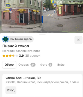 В Калининграде по закону запрещена продажа алкоголя после 21 часа. Не смотря на запрет, ежедневно магазин «пивной сокол», расположенный по адресу Больничная, 30 продолжает работать, сотрудники продают алкоголь после 21 часа. Ни баром, ни кафе, ни рестораном «пивной сокол» не является. Отсутствует туалет для посетителей, также нет отдельной канализации, что является одним из требований для бара/ресторана/кафе. Просим провести проверку законности работы данного магазина, а также запретить продажу алкоголя в запрещённые часы.