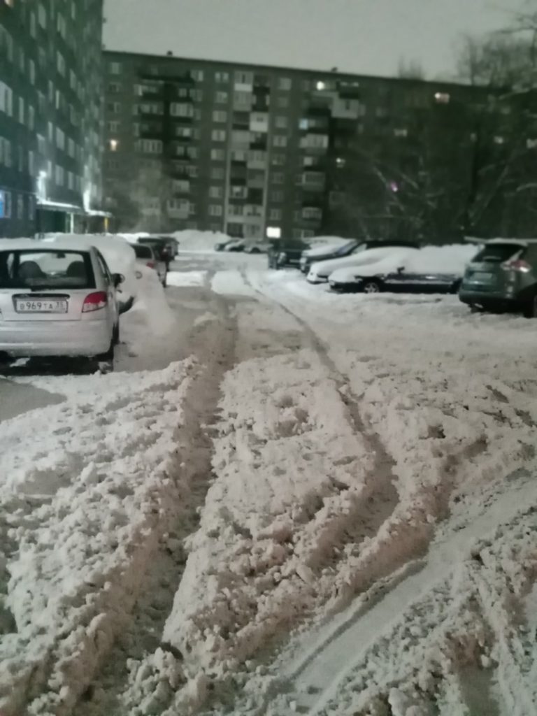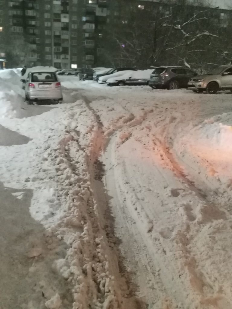 Плохая уборка двора в Череповце: колеи, каша из снега, проблемы с проездом и проходом