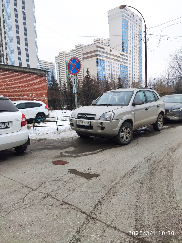 01.03.2025, Екатеринбург, Волгоградская, 178. Парковка под знаком «Остановка запрещена».