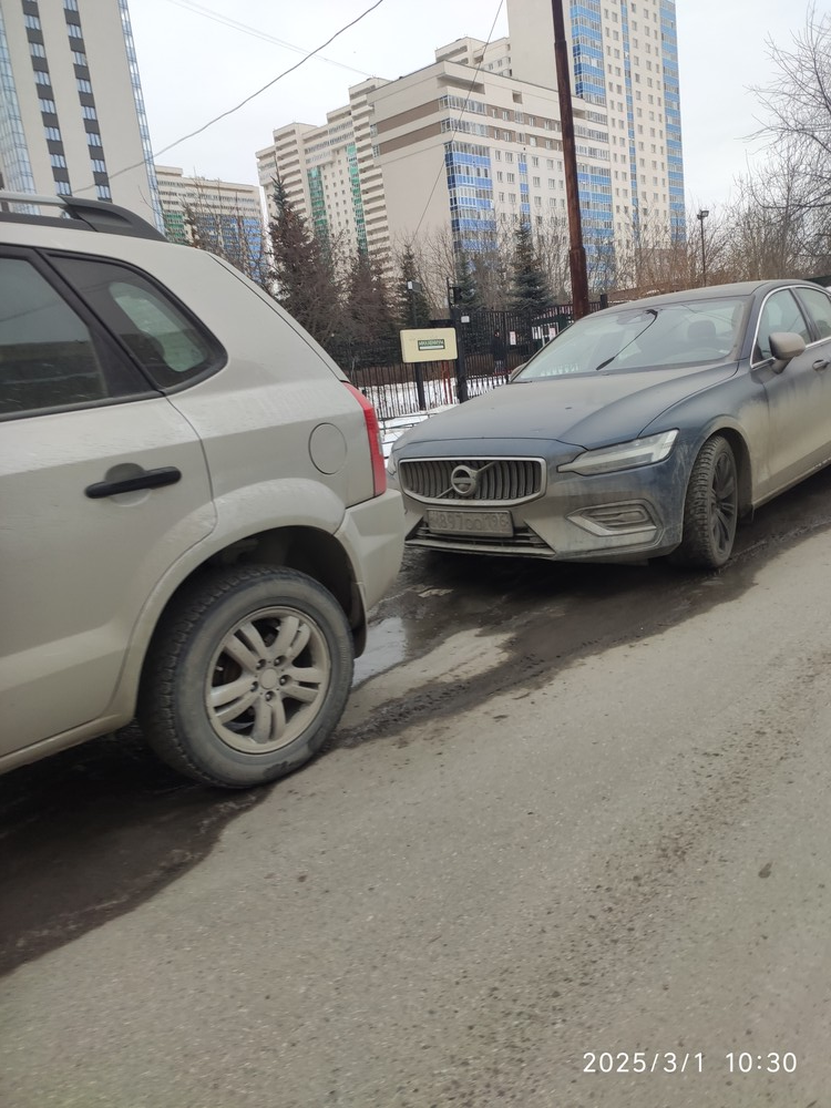 03.03.2025 г., 12:05, г. Верхняя Пышма, улица Александра Козицына, дом 8. Парковка на газоне.