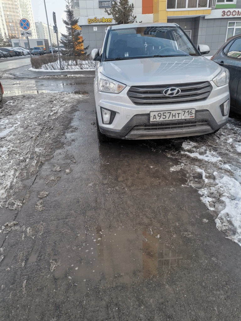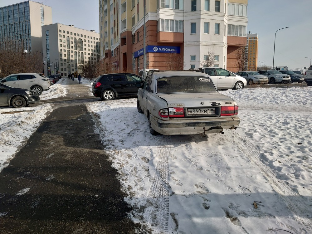 1.03.2025, Казань, Азата Аббасова, парковка на тротуаре.