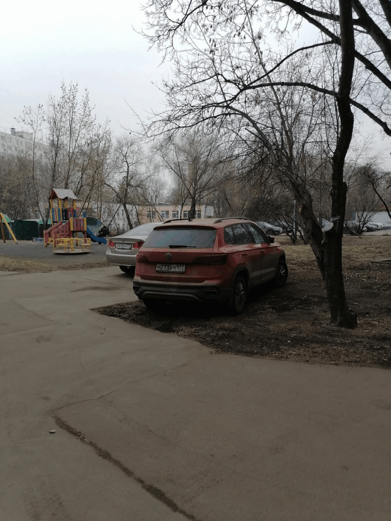01.03.2025, город Москва, проезд Шокальского, д. 22к1. Автомобиль марки Фольксваген, модель Таос, гос. номер М273АМ977 припаркован на газоне.