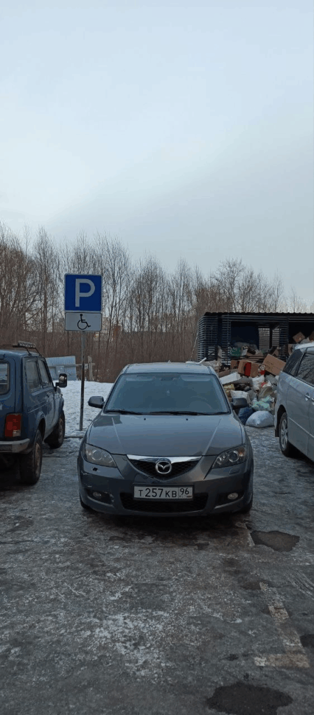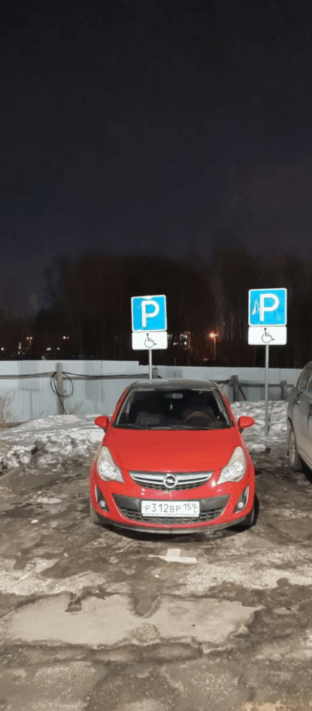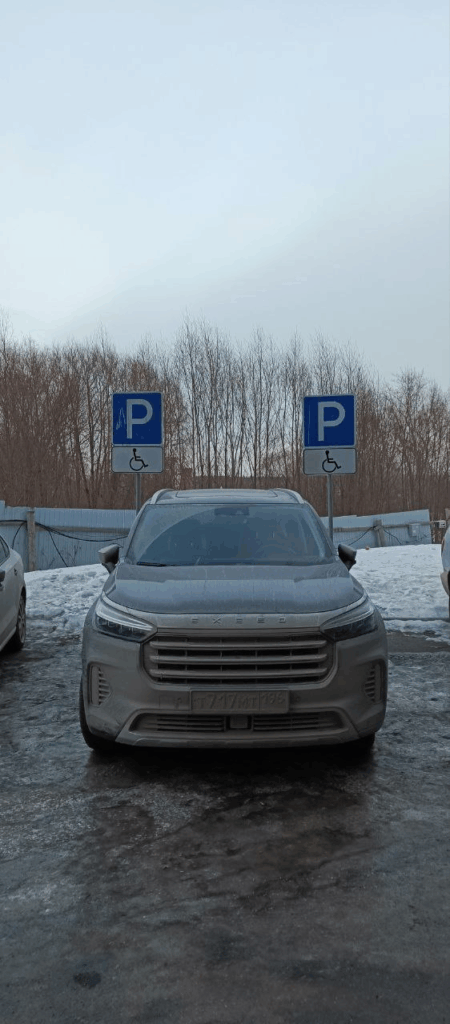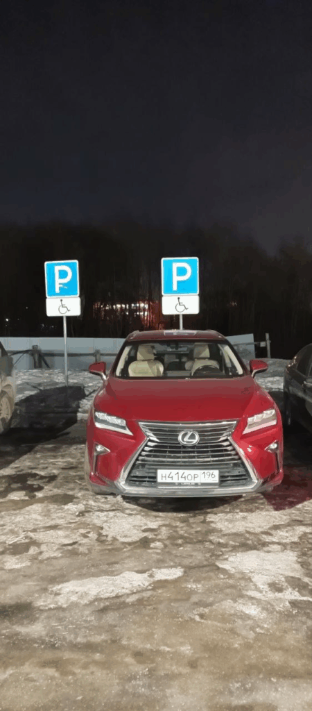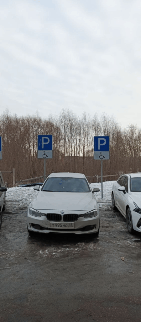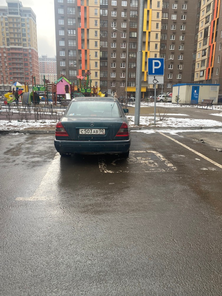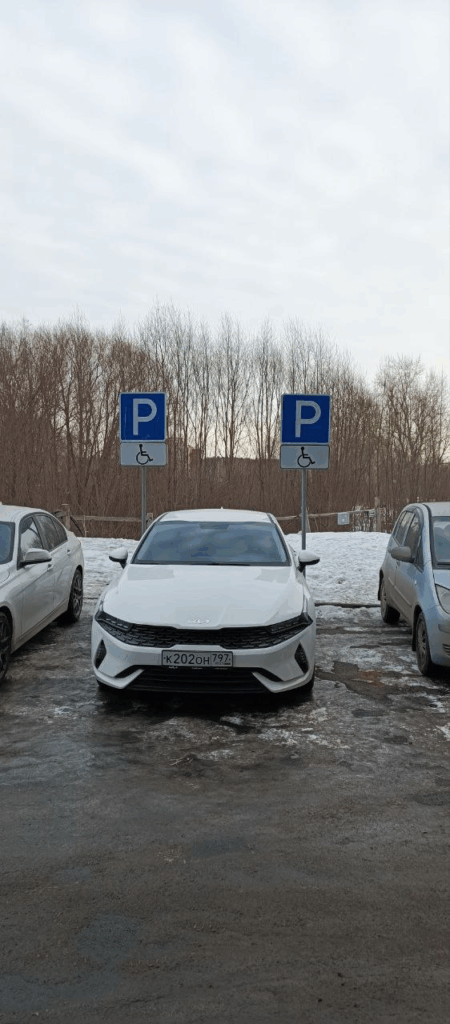 МО, г. Люберцы, мкр. Мирный, ул. Академика Северина, 7/1. Парковка на месте, предназначенном для инвалидов.