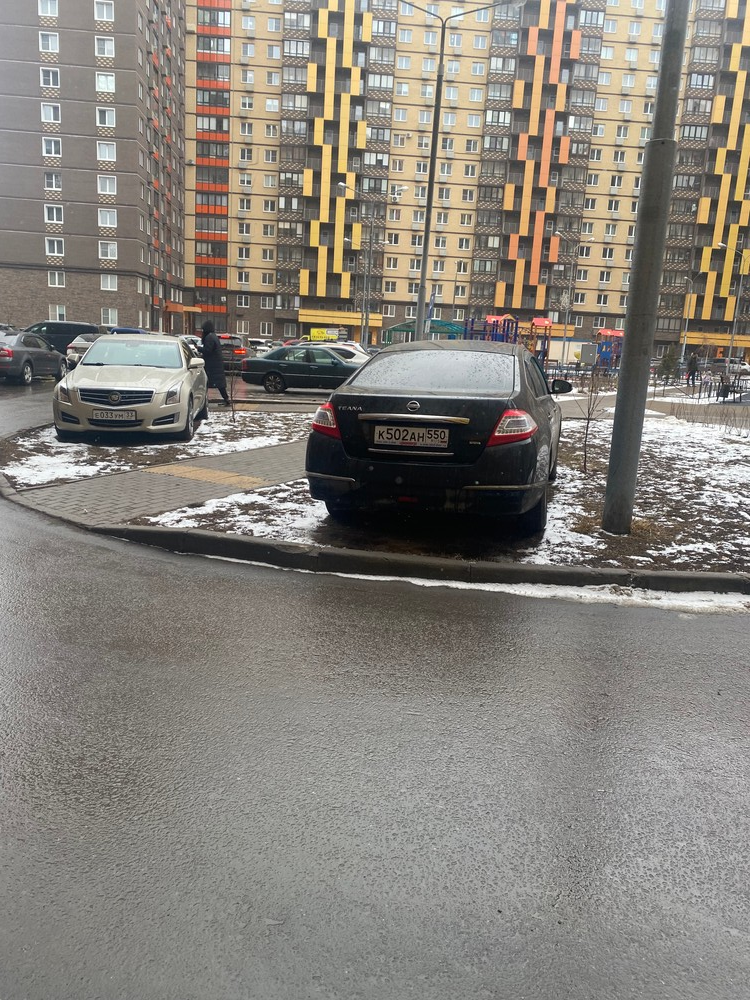 03.03.2025, Московская область, город Одинцово, улица Триумфальная, дом 6. Парковка на тротуаре в прогулочной зоне.