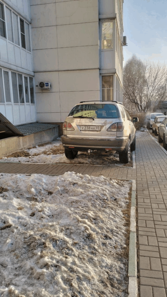 03.03.2025, Иркутск, ул. Лермонтова, 81/20. Автомобиль припаркован на газоне.