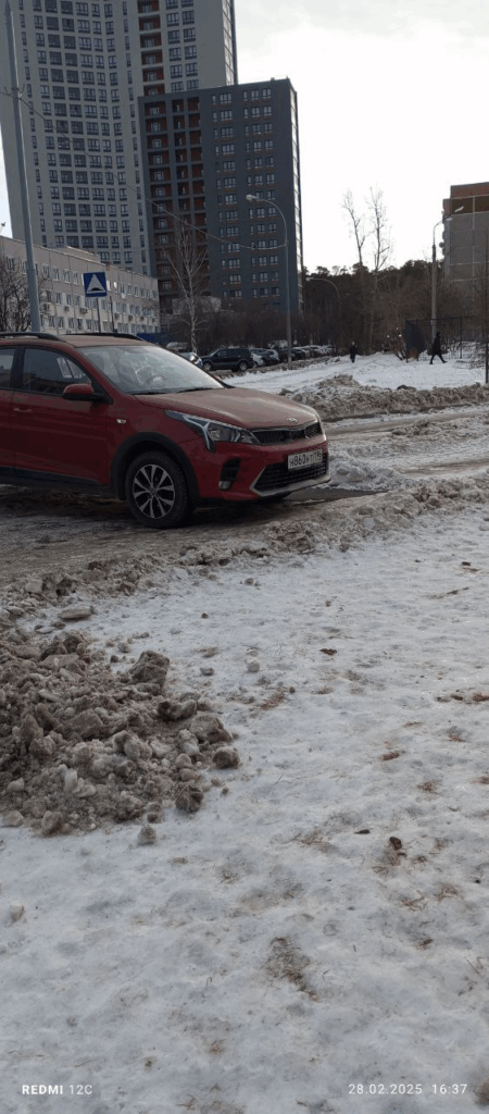 28.02.25, Екатеринбург, академика Постовского, 12а. Парковка в неположенном месте, на пешеходном тротуаре.