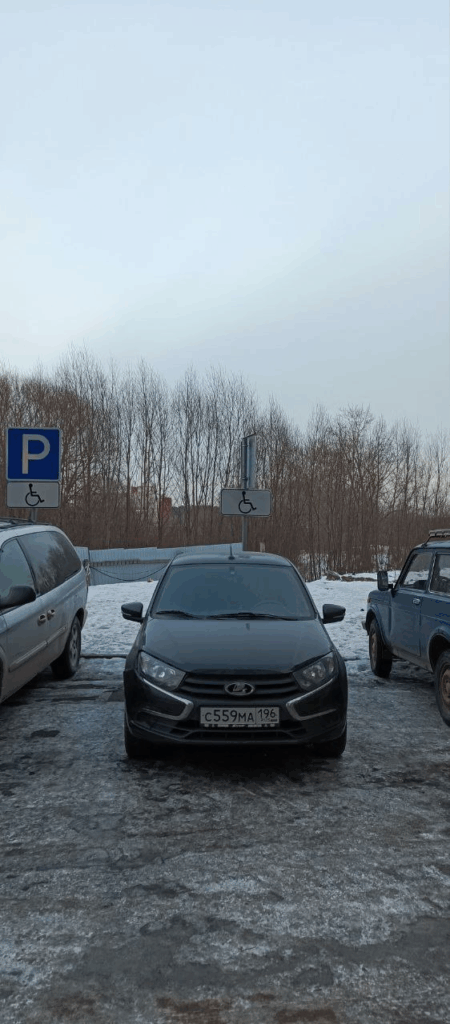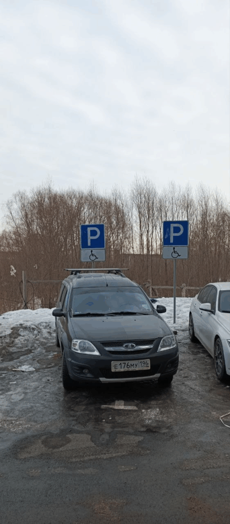Г. Екатеринбург, ул. Хуторская, д. 1/4 (парковка с торца здания). Стоянка на местах, предназначенных для лиц с ограниченными возможностями, не имеющие установленного знака «Инвалид». Фото прилагаются.