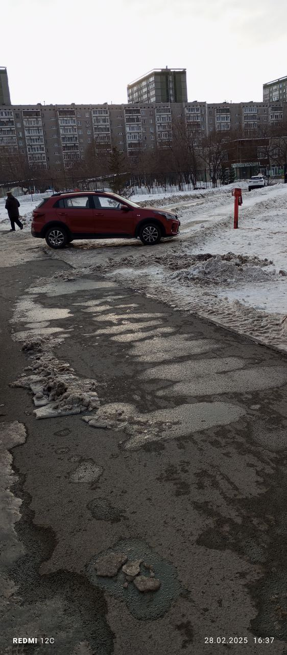 1.03.2025, Казань, Азата Аббасова, парковка на тротуаре.